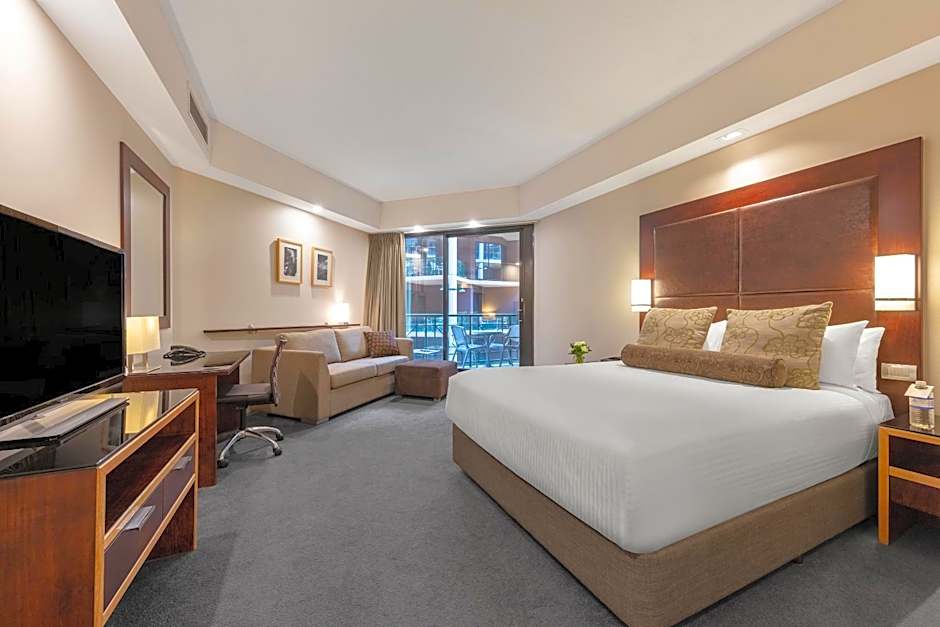 Our Superior King Spa Room consists of of a King Size Bed, private bathroom with spa bath, and offers city or Bridge Road views from the balcony. Maximum occupancy in these rooms is 2 people.